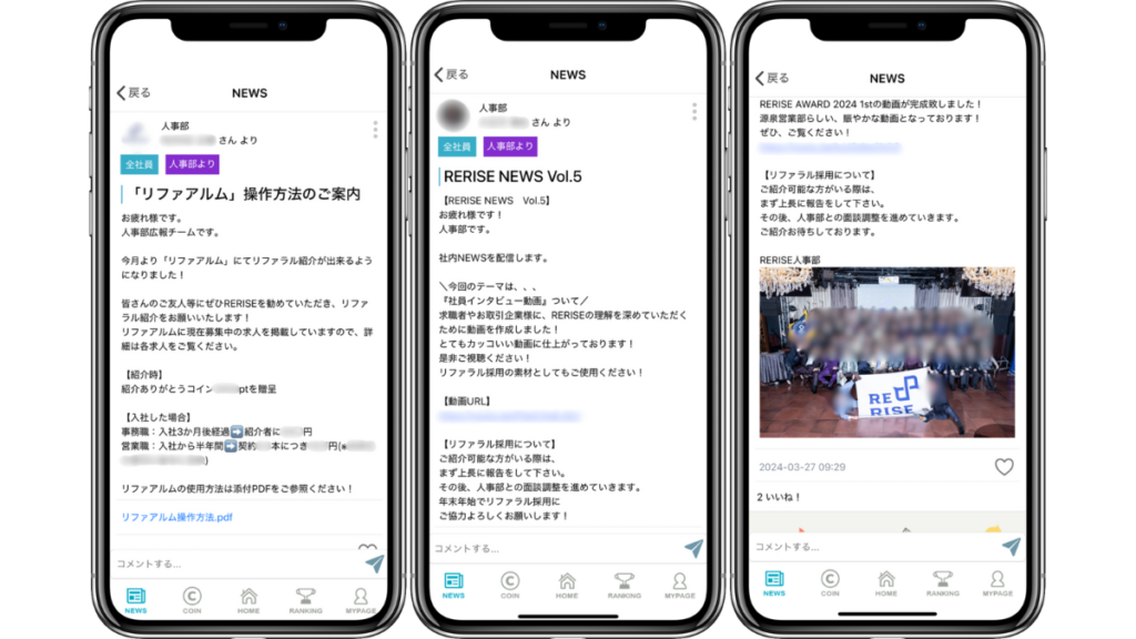 URLで簡単に求人を共有できるUIや、紹介数や進捗が可視化できるダッシュボード機能、紹介活動に対するコイン還元などのインセンティブ機能などの機能があり、社員が自発的に紹介活動を行えるよう、仕組みの整備と動機付けを同時に実現できることがリファアルムの導入の大きな決め手でした。