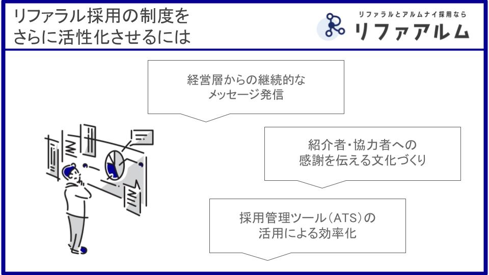 導入時だけでなく、定期的に経営層がリファラル採用の重要性を語り、協力への感謝を伝えることで、活動の熱を維持することができます。