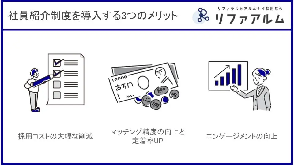 社員紹介制度(リファラル採用)は、採用コストの削減だけでなく、ミスマッチの防止や既存社員のエンゲージメント向上など、企業にとって多くのメリットをもたらす採用手法です。
