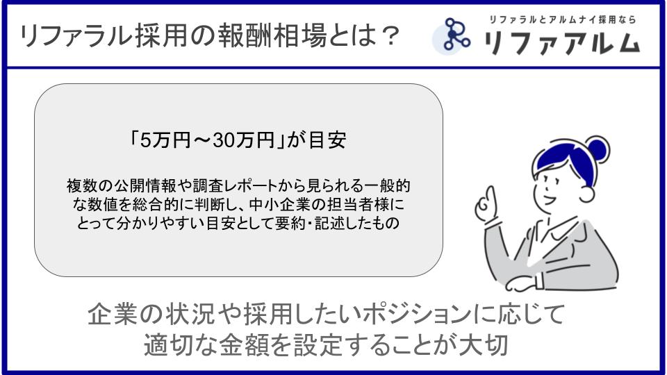 【結論】リファラル採用の報酬相場は「5万円~30万円」が目安