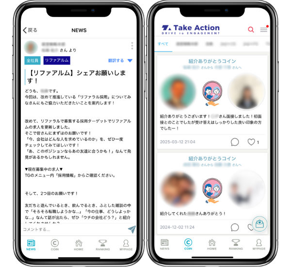 Take Action社が提供するリファアルムの場合は、「エンゲージメント支援サービスの一機能としてリファラル採用に関する機能を提供している」ことが他社サービスとの大きな違いです。