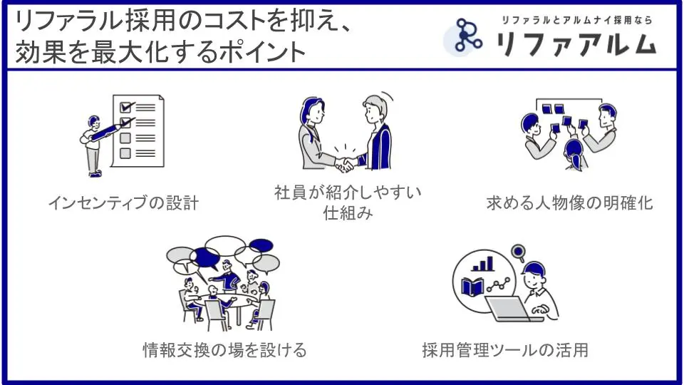 リファラル採用の費用対効果をさらに高めるためには、いくつかのコツがあります。コストを抑えつつ、効果を最大化するポイントをご紹介します。