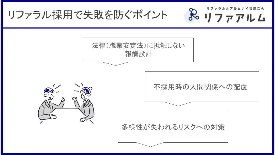 最後に、リファラル採用を進める上で注意すべき点と、その対策について解説します。