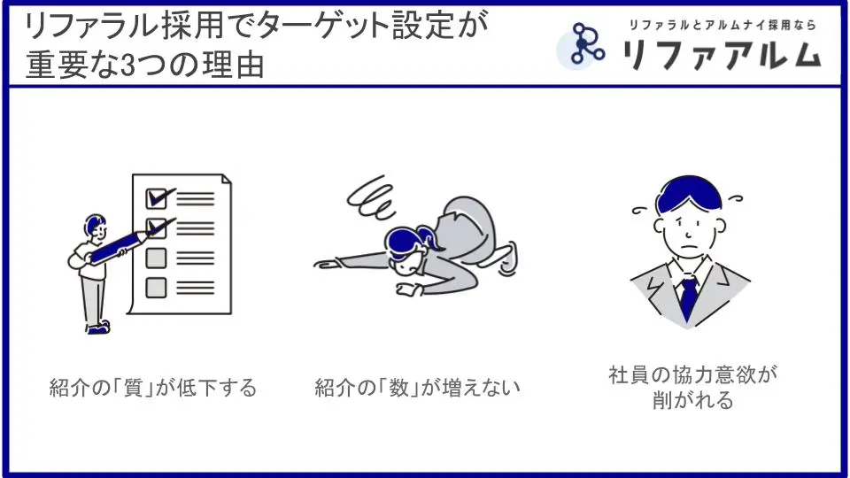 もし、このようなお悩みをお持ちであれば、その原因はリファラル採用における「ターゲット設定」が曖昧なことにあるのかもしれません。