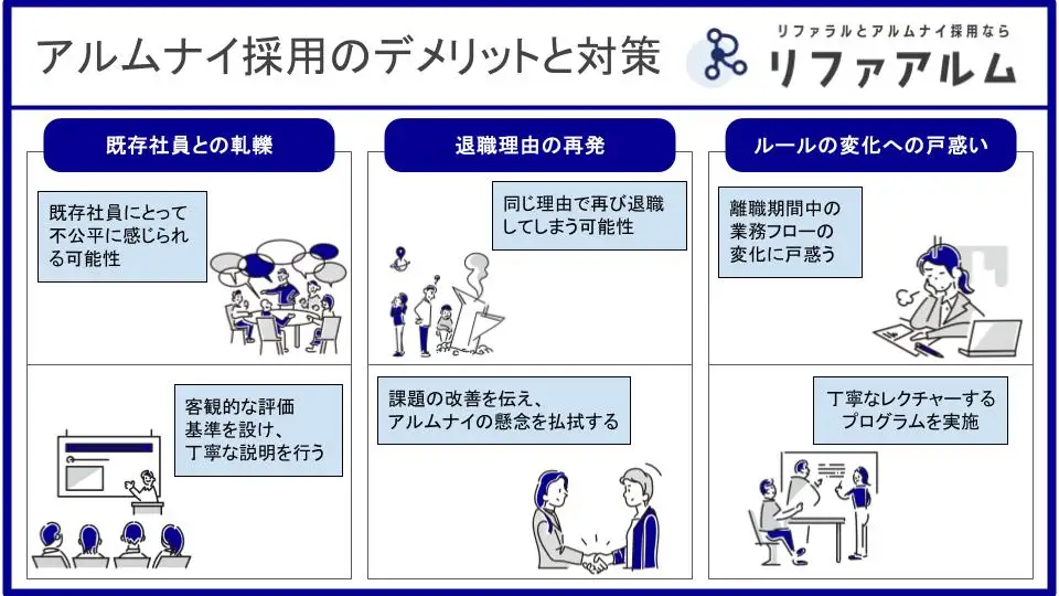 【関連】アルムナイ採用の導入前に知っておくべきデメリットとは?具体的な対策と成功に導くポイントを解説