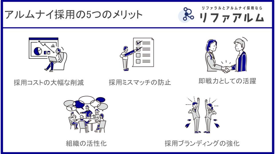 アルムナイ採用を戦略的に導入することは、企業に多くのメリットをもたらします。ここでは、代表的な5つのメリットを具体的に解説します。