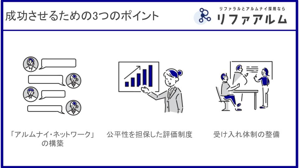 アルムナイが過去のやり方に固執せず、かつ新しい知見を発揮しやすいよう、周囲がサポートし、時には意見に耳を傾ける風土を育むことが、アルムナイと組織双方の成功に繋がります。