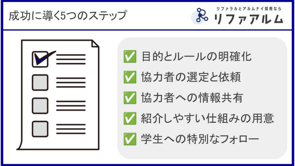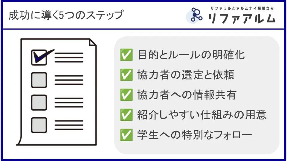 新卒のリファラル採用を成功させるには、思いつきで始めるのではなく、しっかりとした設計と準備が不可欠です。