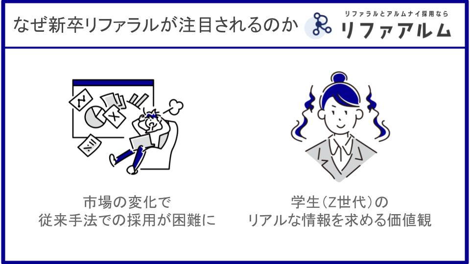 新卒採用においてリファラル採用が注目される背景には、「採用市場」と「学生(Z世代)」の大きな変化があります。