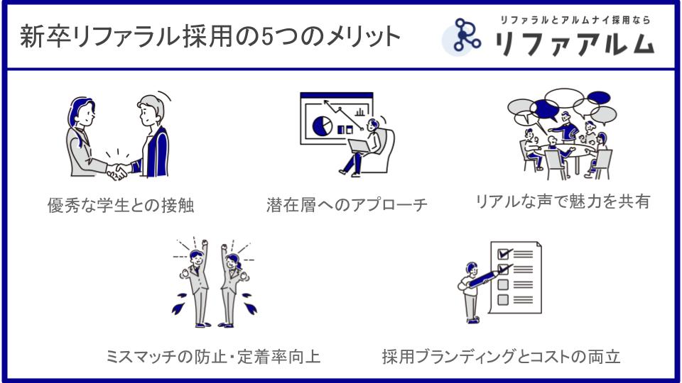 新卒採用に特化した場合、リファラル採用には中途採用とは一味違ったメリットがあります。