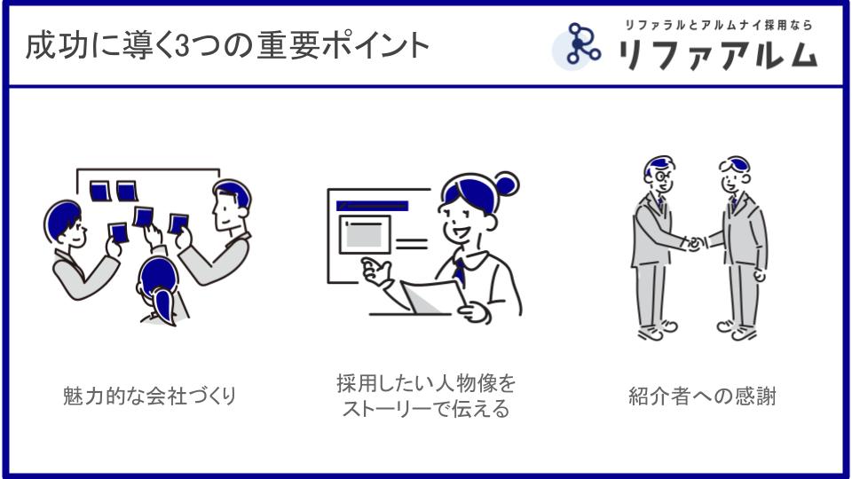 手順通りに制度を設計するだけでなく、以下の3つの「本質的なポイント」を意識することで、リファラル採用の成功確率は格段に高まります。これらは単なるテクニックではなく、企業の姿勢そのものが問われる部分です。